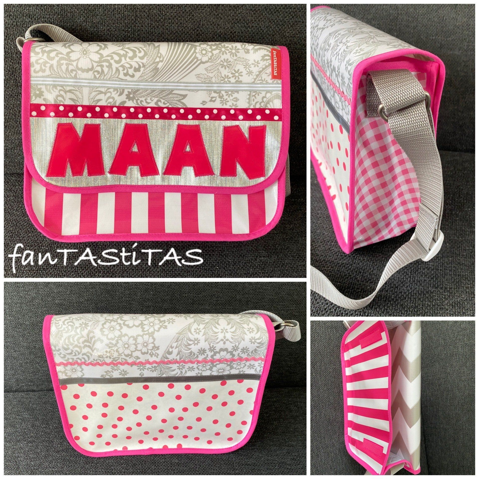 Geef op het bestelformulier aan in welke kleurstelling u de tas gemaakt wilt hebben, de maat en de eventuele extra's.