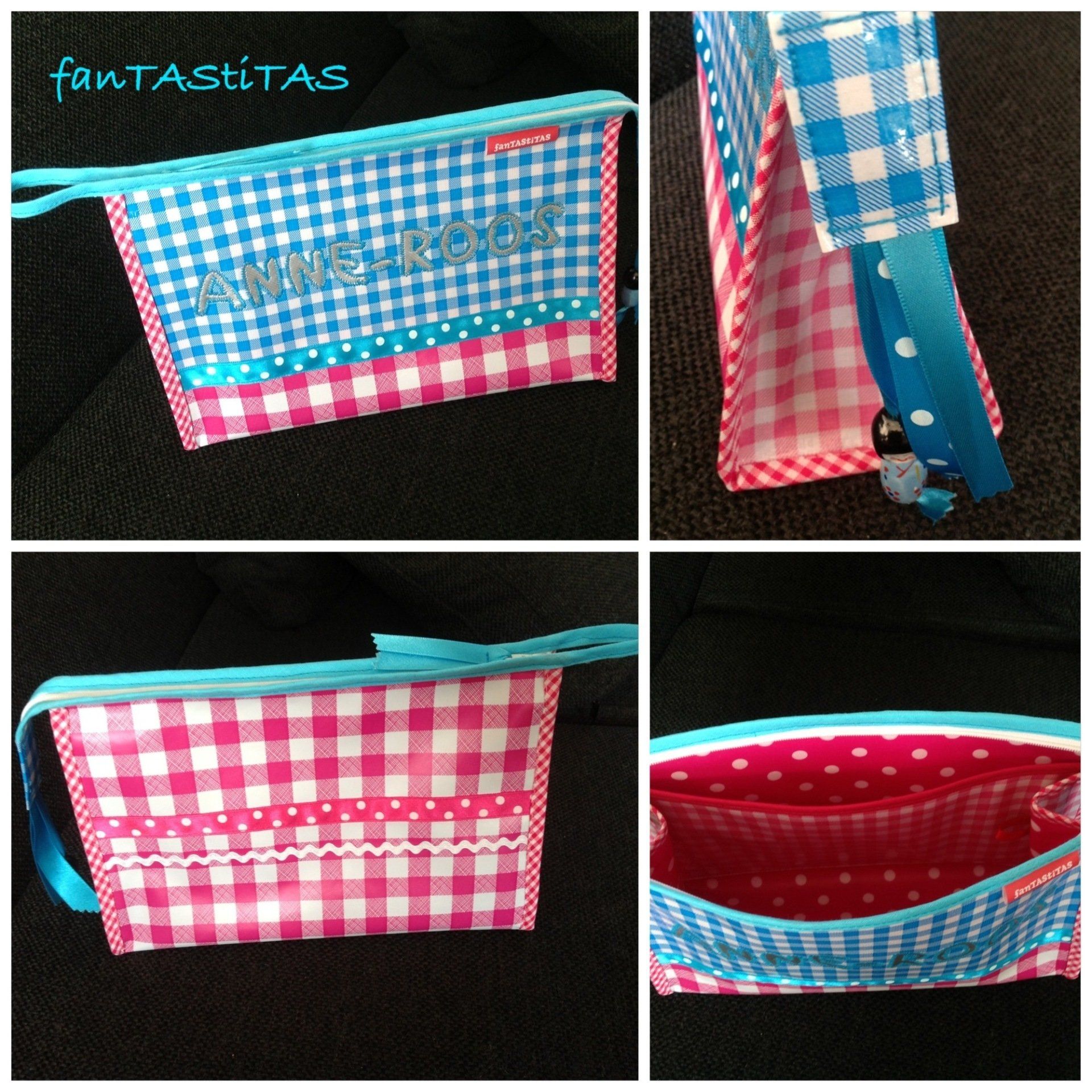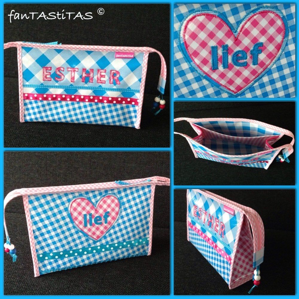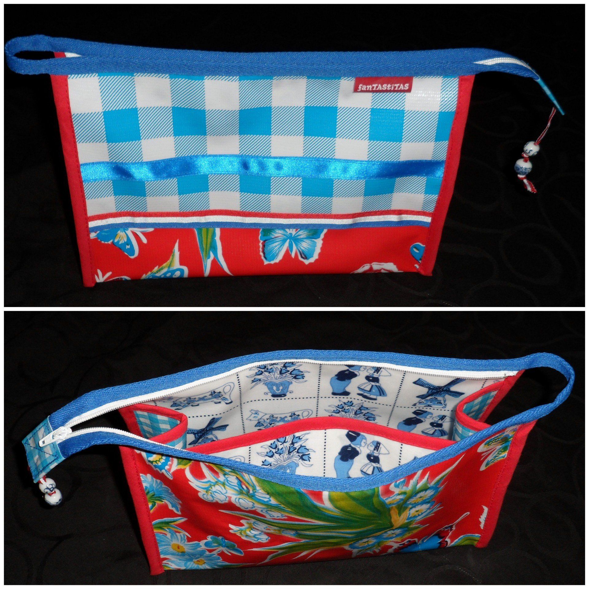Geef op het bestelformulier aan in welke kleurstelling u het toilettasje gemaakt wilt hebben.